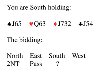 Bridge Quiz 1787 October 21, 2025 by gtyoshida Both sides are vulnerable What would you bid?PassThree HeartsThree SpadesThree No TrumpVoteResultsPass - partner shows 20-21 HCPs so game seems likely but your hand lacks any entry to finesse a necessary trick