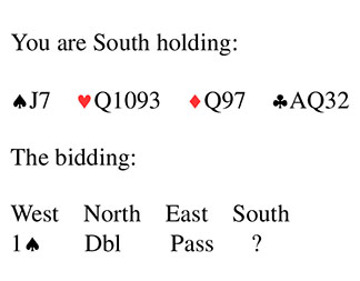 Bridge Quiz 1836 December 9, 2025 by gtyoshida What would you bid?One No TrumpTwo ClubsTwo HeartsThree HeartsVoteThree Hearts - partner has opening pts & support for the unbid major, Jump to 3 hearts with 11 pts & likely game