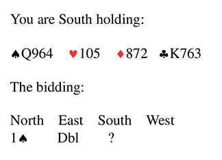 Bridge Quiz 1851 December 24, 2025 by gtyoshida Both sides vulnerable What would you bid?PassRedoubleTwo ClubsTwo SpadesVoteResultsTwo Spades - shows a weak hand with spade support. Also makes it hard for west to answer east's takeout double