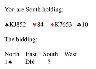 Bridge Quiz 1852 December 25, 2025 by gtyoshida Both sides vulnerable What would you bid?RedoubleTwo SpadesThree SpadesFour SpadesVoteFour Spades - jump to game as partner likely takes 10 tricks. Opps could also take 10-11 tricks in clubs or hearts