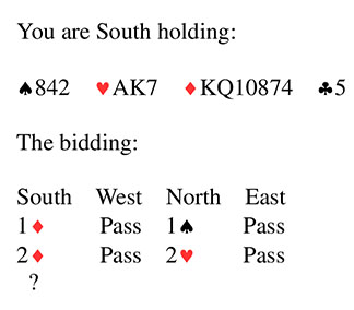 Bridge Quiz 1850 December 23, 2025 by gtyoshida Both sides vulnerable What would you bid?PassRedoubleOne No TrumpTwo ClubsVoteTwo Clubs - bidding a new suit denies 10+ HCPs & is not forcing. Warns partner there may be no spade support.