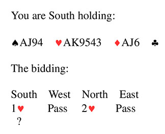Bridge Quiz 1906 February 17, 2026 by gtyoshida What would you bid?Two SpadesFour HeartsFour No TrumpSix HeartsVoteTwo Spades - cuebid spades & diamonds to look for a slam. With little more than those 2 kings, slam is feasible