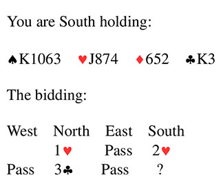 Bridge Quiz 1320 Neither side vulnerable What would you bid?Three HeartsThree SpadesThree No TrumpFour HeartsVoteFour Hearts - partner cue bid needing help in clubs & interest in game. You have a doubleton king.