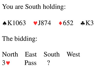 Bridge Quiz 1323 Neither side vulnerable What would you bid?PassThree SpadesThree No TrumpFour HeartsVoteFour Hearts - you're blocking the opponents from bidding & might steal the contract - undoubled.