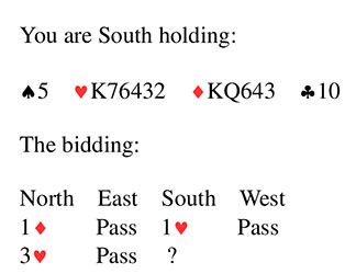 Bridge Quiz 1764 What would you bid?Four DiamondsFour HeartsFour No TrumpFive DiamondsVoteResultsFour No Trump - you have 4 card support & can use Blackwood to set the contract at 5 hearts, 6 hearts, or a grand slam