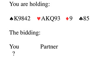 Bridge Quiz 1829 Both sides vulnerable What would you bid?One SpadeOne HeartTwo SpadesTwo HeartsVoteOne Spade - then bid hearts twice showing 5-5 distribution. Heart bid shows 6-5 hand & a "reverse bid" (17+ pts)