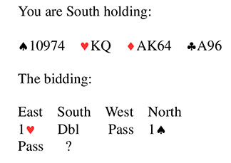 Bridge Quiz 1868 What would you bid?PassOne No TrumpTwo SpadesThree SpadesVotePass - partner only "advanced" the bidding & while you have 4 card spade support, your K,Q of hearts is devalued