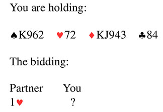 Bridge Quiz 1884 What would you bid?PassOne SpadeOne No TrumpTwo DiamondsVoteOne Spade - a weak bid promising less than 10 points while allowing for a spade fit or no trump bid by partner