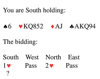 Bridge Quiz 1905 What would you bid?Three ClubsFour HeartsFour No TrumpSix HeartsVoteFour No Trump - if partner shows 1 ace (heart or spade) using Blackwood, bid 6 hearts. The odds are in your favor