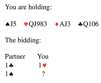 Bridge Quiz 511 What would you bid?One No TrumpTwo HeartsTwo No TrumpThree No TrumpVoteTwo No Trump - with 11 HCPs, a balanced hand, & diamond strength, make a game-invitational bid.