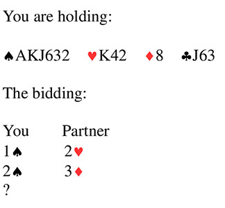 Bridge Quiz 515 What would you bid?Three HeartsThree SpadesThree No TrumpFour HeartsVoteFour Hearts - you have a trump fit so bid game. Your partner will likely pass three hearts after you rebid your spades.