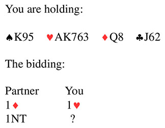 Bridge Quiz 523 What would you bid?Two HeartsTwo No TrumpThree HeartsThree No TrumpVoteThree No Trump - bid game. Partner may pass invitational bids & you have opening points facing opening points.